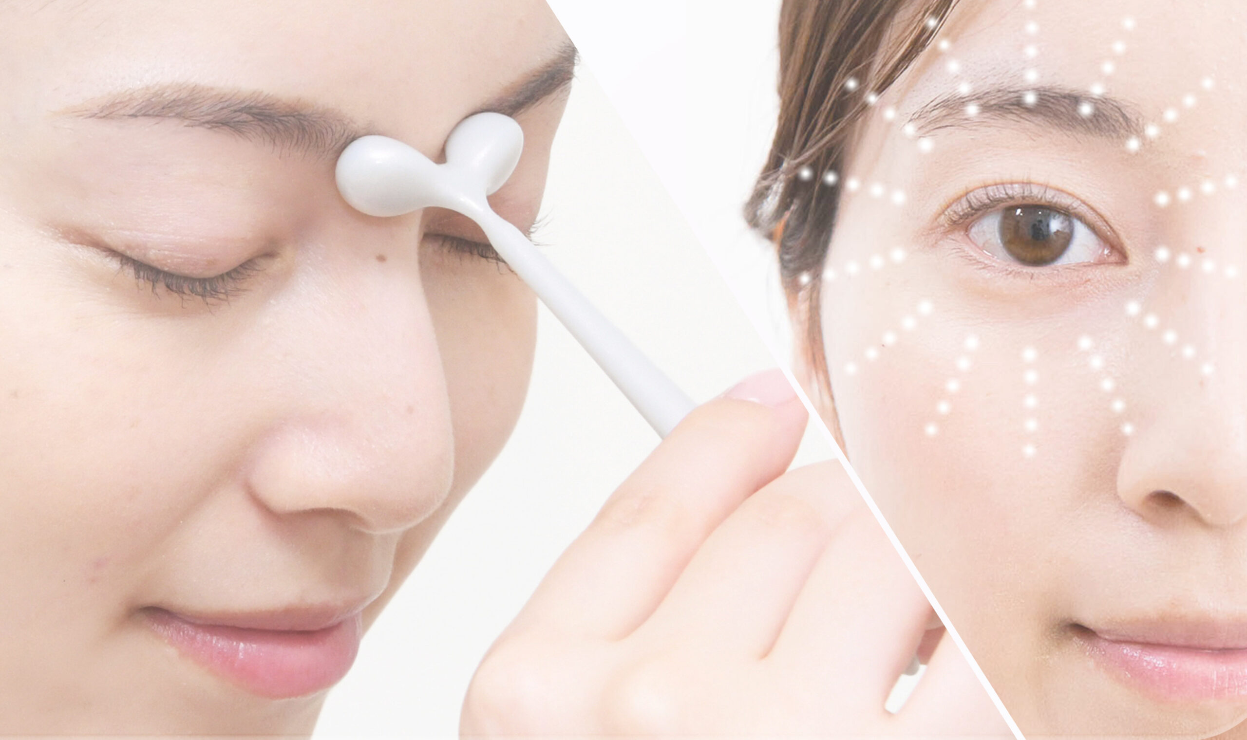 KAOYOMI は、疲れ目や見た目の問題にこたえる3種のフェイスケアデバイス。「ささない整顔バリ」の名は、鍼をしなくても当てて押すだけで同様の成果をもたらす独自形状からきています。目元にさっと当てるだけで、ツボをとらえ、心地よい響きでリカバリーマッサージ。